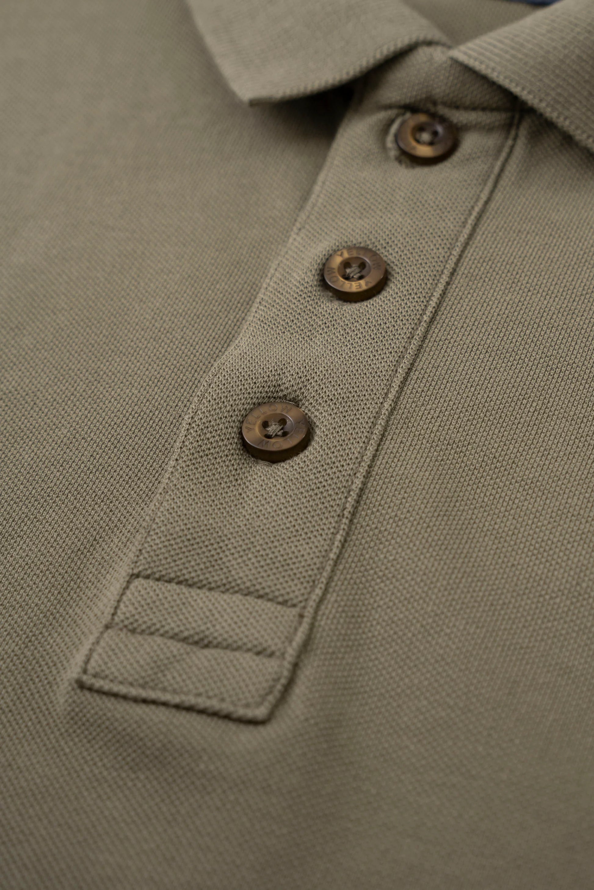 - Classic polo collar with button placket.